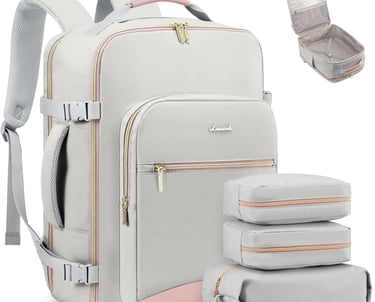 LOVEVOOK Travel Backpack for Women & Men 40L,Airline Approved Carry On Backpack Travel Essentials,TSA Carry on Luggage,Waterproof Personal Item Travel Bag,Suitcase with 3 Packing Cubes,Light gray-Pink