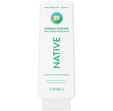Native Sunscreen Lotion Pear & Coconut Water SPF 30, 100% Mineral SPF for Face & Body Broad Spectrum UVA UVB for Men & Women, Suitable for Sensitive Skin & Hawaii Compliant, Lightweight, 7oz
