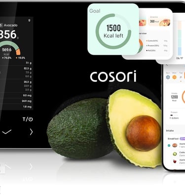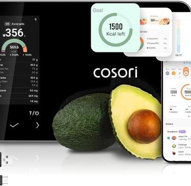 Cosori Smart Food Kitchen Scale with Nutritional Calculator, Free App for AI Scan, Calorie & Macro Tracking, Food Preload, On-Screen Nutrient Info, Personal Goals, Rechargeable, 11 lb / 5 kg