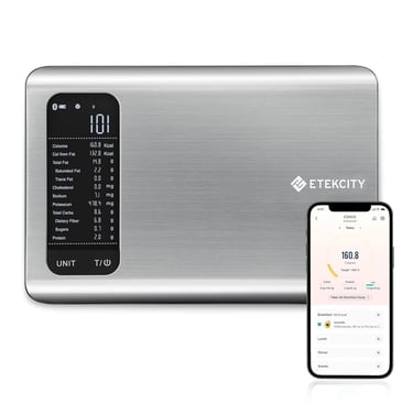 Etekcity Smart Food Kitchen Scale with Nutritional Calculator, Free App with 19 Nutrients Tracking, Calorie, Marco, Digital grams and ounces for weight loss, Premium Stainless Steel, 11lb