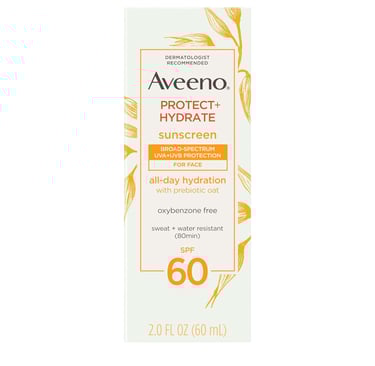 Aveeno Protect + Hydrate Face Sunscreen, SPF 60 Broad Spectrum, for Sensitive Skin, Travel Size, Water Resistant (80 minutes), Paraben, Oxybenzone & Oil Free, 2 fl oz