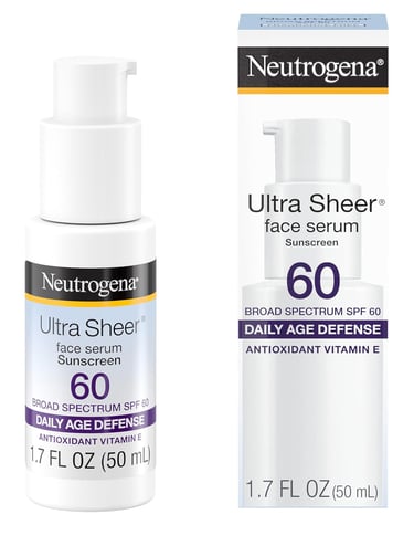 Neutrogena Invisible Daily Defense Broad Spectrum SPF 60, Antioxidants for Skin Glow, Hydrating Face Sunscreen Serum, Water Resistant (80 minutes), Oil-Free, Fragrance Free, Non Comedogenic, 1.7 Fl Oz