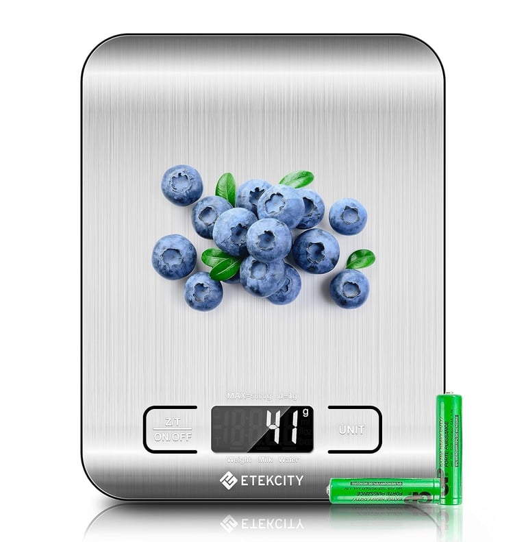 Etekcity Food Kitchen Scale, Digital Grams and Ounces for Weight Loss, Baking, Cooking, Keto and Meal Prep, LCD Display, Medium, 304 Stainless Steel.
