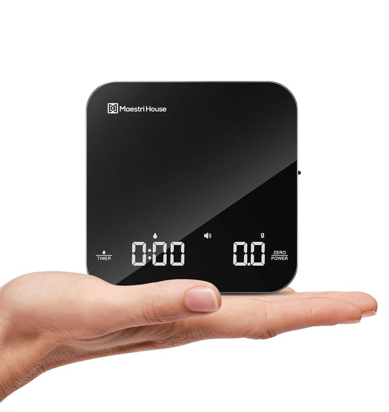 Maestri House Mini Coffee Scale with Timer, USB-C Rechargeable Espresso Scale, 2kg/0.1g Accurate Scale for Espresso and Pour-Over Coffee, Portable Digital Kitchen Scale with Auto Timer (Black&Silver)