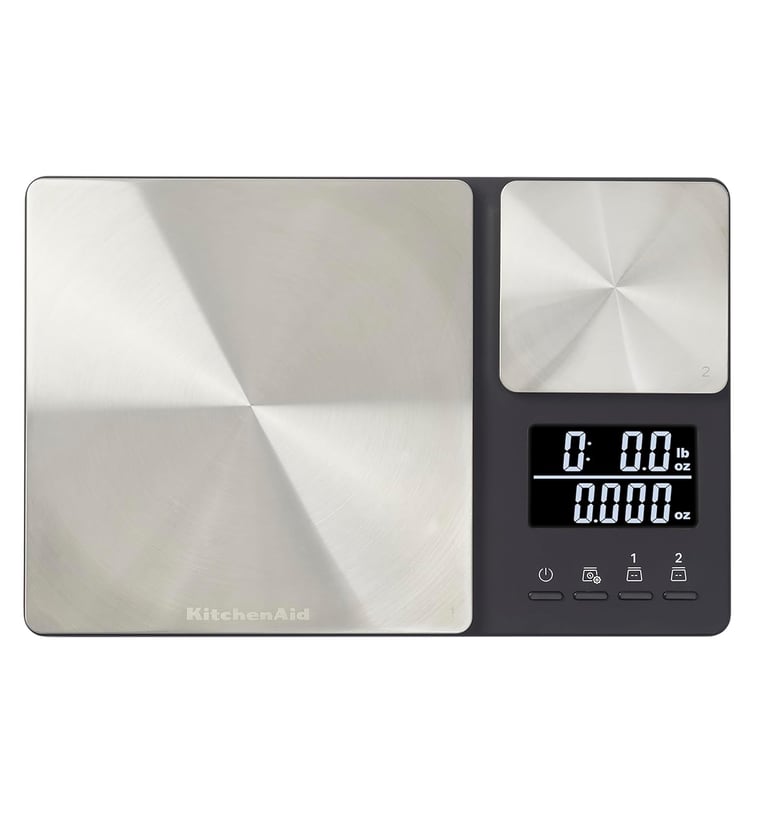 KitchenAid KQ909 Dual Platform Digital Kitchen and Food Scale, 11 pound capacity and Precision 16oz capacity, Black with Stainless Steel.